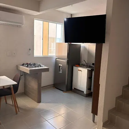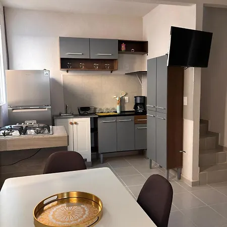Lindo Y Espacioso Departamento Con Roof Privado Y Alberca apartment is equipped with a full kitchen.